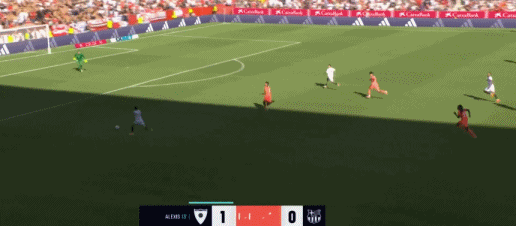 第45+7分钟,佩德里送助攻,拉什福德攻入个人西甲首球!巴萨1-2塞维利亚